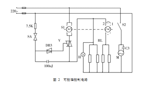 可控硅,也叫晶閘管 ,是一種常用的電子元件 ,當含電子管的恒溫干燥箱其電子管等元器件損壞時 ,便可采用市面上容易購買到的雙向可控硅等元件組成新的電路。在盡量保持原電路的前提下, 其新電路設計如圖 2 所示。從圖 2 可看出 ,新電路元件少,控制電路簡單,價格相對便宜, 且安全可靠。另外,