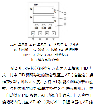 溫度失控在真空干燥箱使用中尤其常見,其表現(xiàn)形式有二:一是直接在接通電源和設(shè)定溫度后加溫,建議用萬(wàn)用表來(lái)檢查真空干燥箱是否存在可控硅短路,如若可控硅短路受損,則可用同一型號(hào)的可控硅進(jìn)行替代修復(fù);二是在接通電源和設(shè)定溫度后,即使按下“開始”按鍵,真空干燥箱也不升溫,建議用萬(wàn)用表來(lái)檢查其可控硅或熱電偶是否損壞,如若受損,則用同一型號(hào)的器件來(lái)進(jìn)行替代修復(fù)。一旦排除真空干燥箱溫度失控的原因不是上述所言,則可確定其溫控電路存在故障。針對(duì)這一問(wèn)題,為了減少資金投入,建議選用G產(chǎn)優(yōu)質(zhì)的溫控器,同時(shí)注意如下事項(xiàng):一是不得隨意變動(dòng)箱體的加熱電路結(jié)構(gòu)布局和傳感器溫度檢測(cè)部位;二是確認(rèn)溫控器電參數(shù)的匹配程度,以保證其負(fù)載能力、控溫范圍和精度與要求相符;三是盡量少改動(dòng)溫控器與傳感器的幾何形狀和外型尺寸,建議采取如下方法:shou先,拆除與新裝溫控器不相干的器件,如前面板;其次,通過(guò)在前面板處開孔來(lái)固定新溫控器和傳感器探頭,并將傳感器的引線接在溫控器后側(cè)的接線端子上;**后,分別將箱體加熱爐絲的兩端用粗徑導(dǎo)線連在固態(tài)繼電器端子上和電源的一端上進(jìn)行調(diào)機(jī)。針對(duì)真空干燥箱溫控器的調(diào)機(jī),以圖 2 所示溫控器為例展開討論。