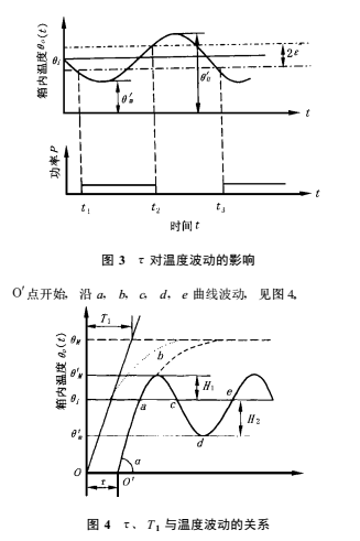 3) 的一段時間內(nèi), 機內(nèi)溫度仍繼續(xù)下降, 然后才逐漸上升;而在調(diào)節(jié)器斷開加熱器停止加熱(t2)后的一段時間內(nèi), 機內(nèi)溫度仍將繼續(xù)上升, 然后才下降。 因此, 生化培養(yǎng)箱溫度的實際波動范圍將超出設(shè)定的溫度控制范圍 (2ε)。 熱傳遞延時 τ的存在將使溫度波動范圍加大, τ越大, 上述影響越大。